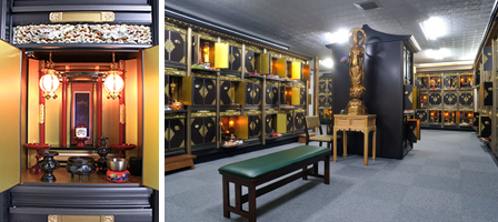 墓地が雪の下となってしまう冬期間でも、屋内にある納骨堂ならいつでもお参りいただけます。お骨箱ごと安置するので、将来事情が変わって改葬する際も困りません。お墓よりも費用が抑えられ、ご子孫への負担も少ないので、近年人気の納骨方法です。